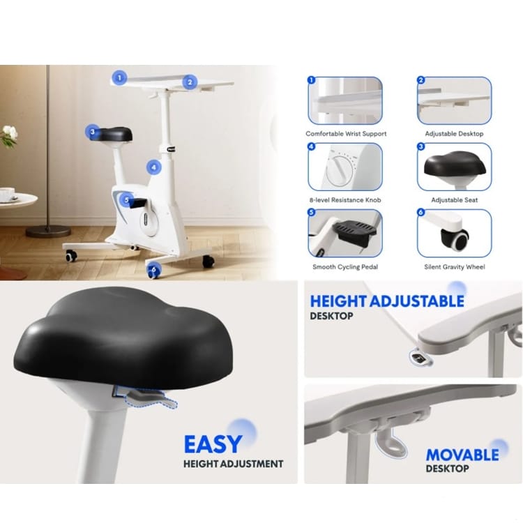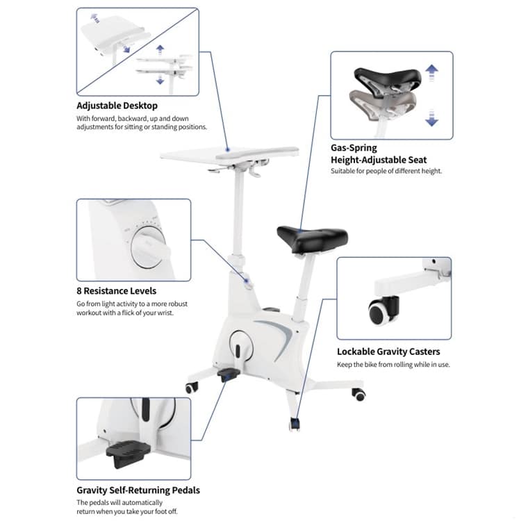 שימוש קבוע באופניים תוך כדי עבודה, ישפר לכם את הבריאות ואת זרימת הדם, וימנע ישיבה ממושכת ללא תזוזה מה שגורם לנזקים בשרירים ובעצמות (בעיקר בגב וברגליים).