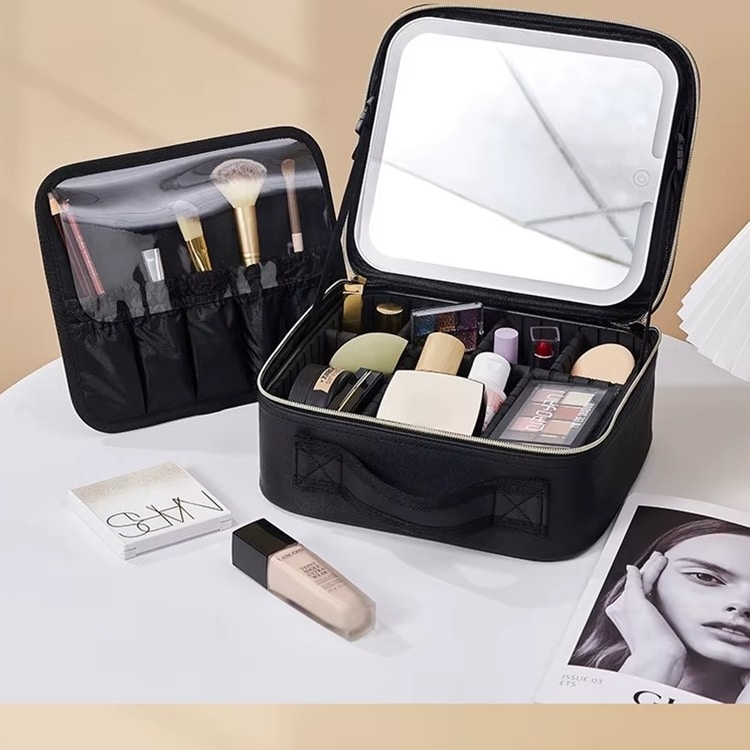 ארגונית איפור ותכשיטים מקצועית עם מראה ותאורת לד