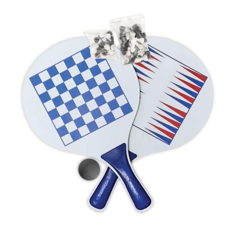זוג מטקות עם 3 משחקי לוח: שחמט, שש-בש ודמקה