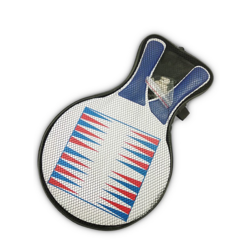 זוג מטקות עם משחקי לוח וכדור, בתיק נשיאה