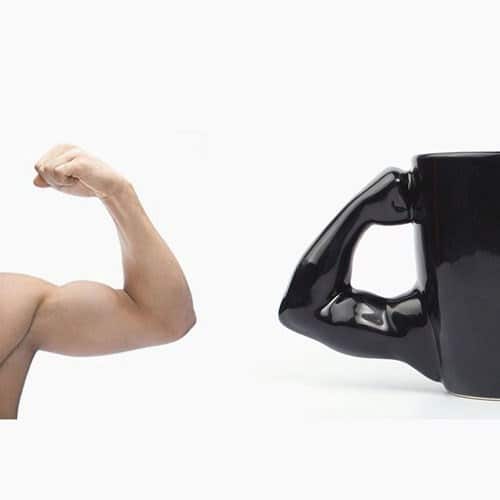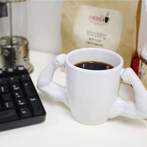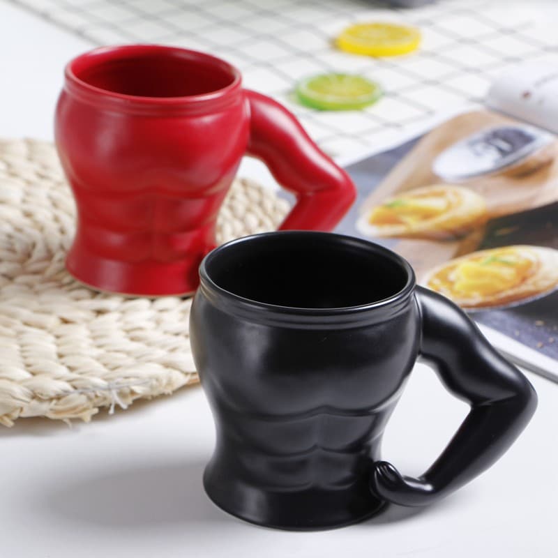 ספל עשוי קרמיקה בעיצוב ייחודי של איש שרירי.