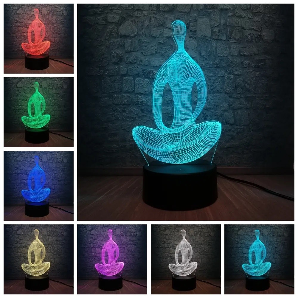 מנורת תלת מימד מרהיבה אשליה של פסלון בעיצוב פעולת מדיטציה/יוגה.