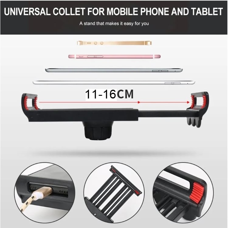 • תאימות אוניברסלית: מתאים לרוב סוגי הסמארטפונים והטאבלטים – לא משנה איזה מכשיר יש לך, המעמד ייתן לו יציבות ונוחות. התופסן של הסמארטפון/הטאבלט נפתח במידות 11 עד 16 ס"מ (מתאים לטאבלאים עד 10 אינטש).
