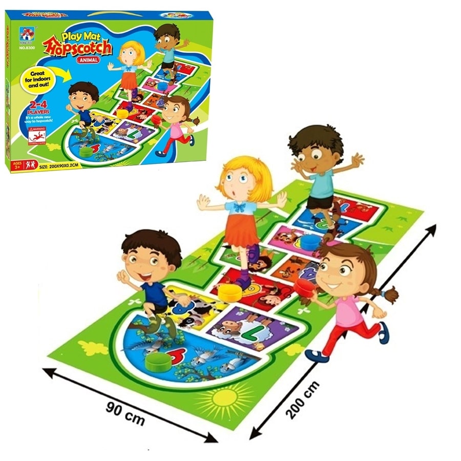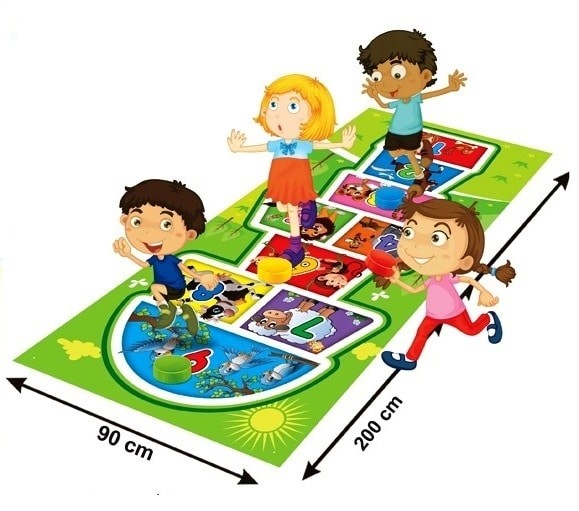 בגרסתו הנוכחית, המשחק כולל: משטח צבעוני עשוי PE בגודל 200*90 ס"מ ובעובי 0.2 ס"מ (במקום השרטוט על הרצפה) + 4 כלי משחק צבעוניים מפלסטיק בגודל 6*2 ס"מ (במקום האבן).