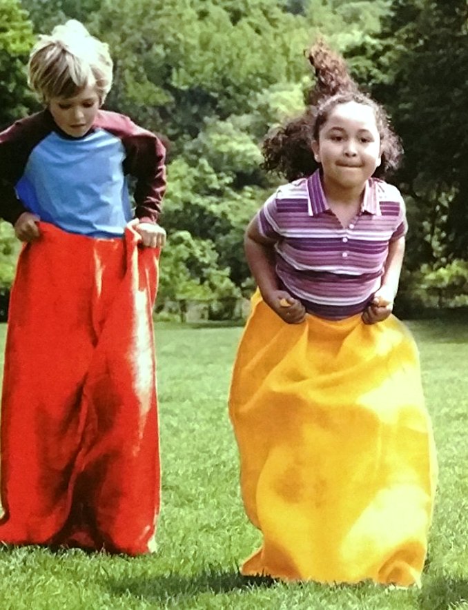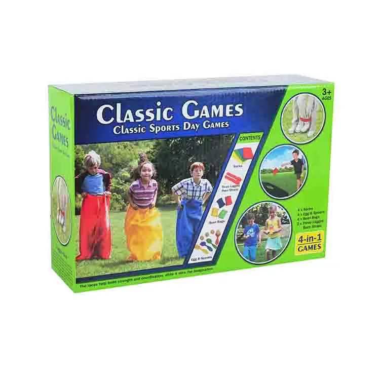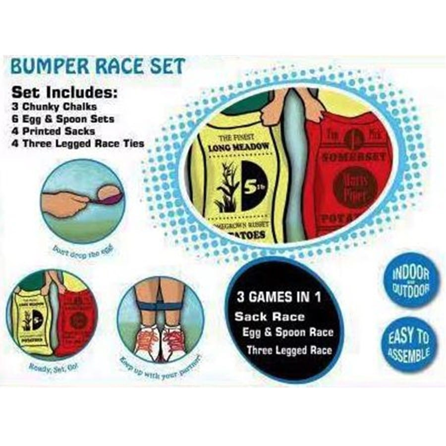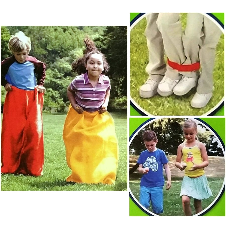 סט משחקי תחרות: קפיצה בשק/ביצה וכפית/רגליים קשורות