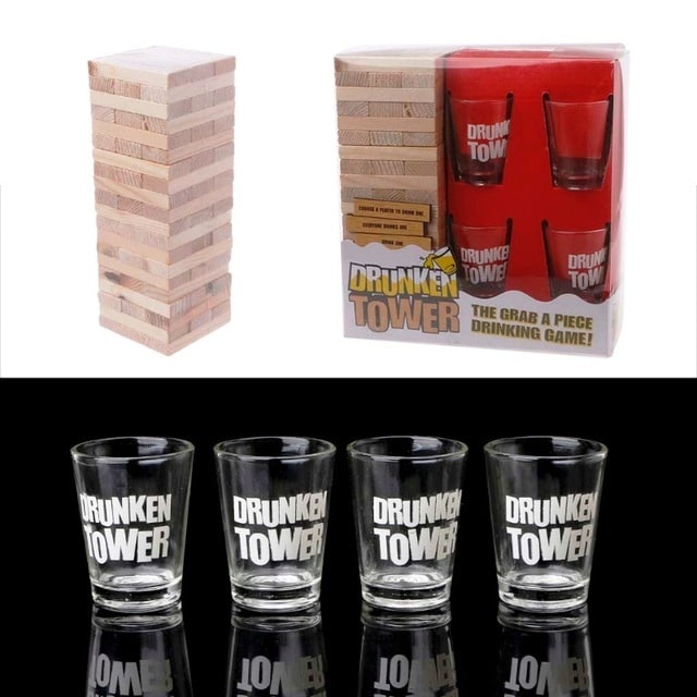 כוסות צ'ייסר: 4 כוסות זכוכית עם הכיתוב Drunken Jenga