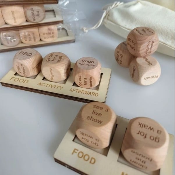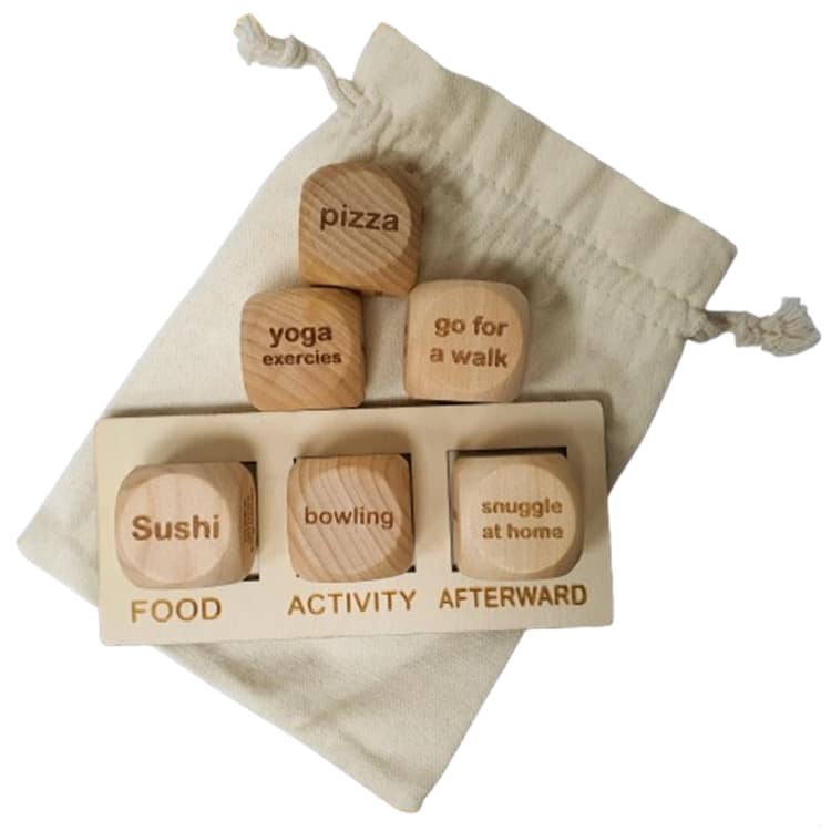 הכירו את "תנו לקוביות להחליט" – סט מהנה של 6 קוביות עץ, שייקח אתכם להרפתקה רומנטית בלתי צפויה כל פעם מחדש.