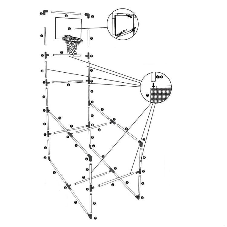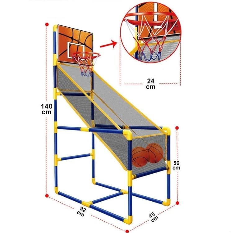 כולל 1 מיני כדורסל מתנפח (מגומי) ומשאבה לניפוח + רשת לשמירה על הכדור (שלא יעוף הצידה)