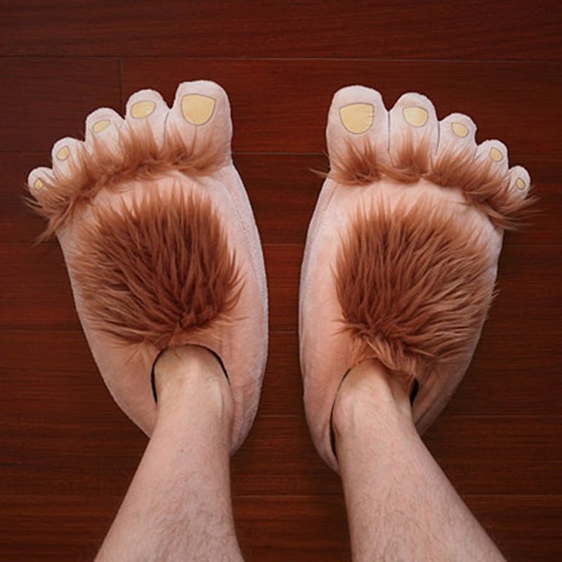 כדי לא להתקרר, זה הזמן לאמץ נעלי בית מפנקות, כאלה שיחממו את כפות הרגליים ויוסיפו קצת סטייל או גועל אפילו לטרנינג הישן ביותר. עם דוגמה הומוריסטית מוטרפת של רגלי איש המערות.