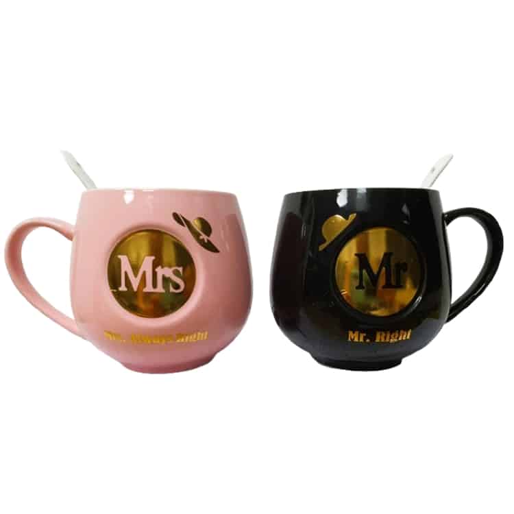 הסט כולל שני ספלים מעוצבים בצבעים אלגנטיים – שחור לגבר עם הכיתוב "Mr. Right" וורוד לאישה עם הכיתוב המשעשע "Mrs. Always Right", כי בינינו – היא תמיד צודקת .