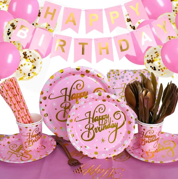 מחפשים עריכת שולחן שתשאיר רושם? הסט המפואר שלנו בעיצוב נקודות זהב בסגנון מרהיב – וורוד חגיגי – והוא הפתרון המושלם לכל חגיגת מסיבת יום הולדת.
