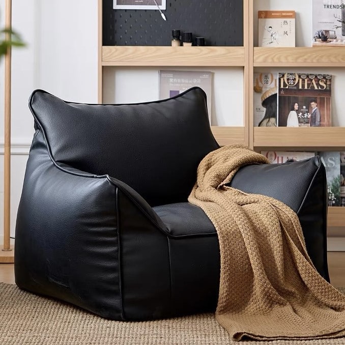 פוף כורסא גדול ומפנק – דמוי עור שחור