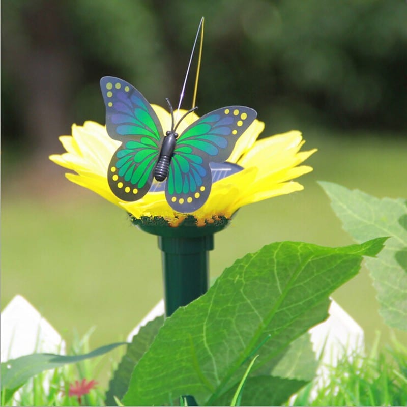 קבלו את הפרפר הסולארי המעופף עם פרח נוי מפלסטיק
