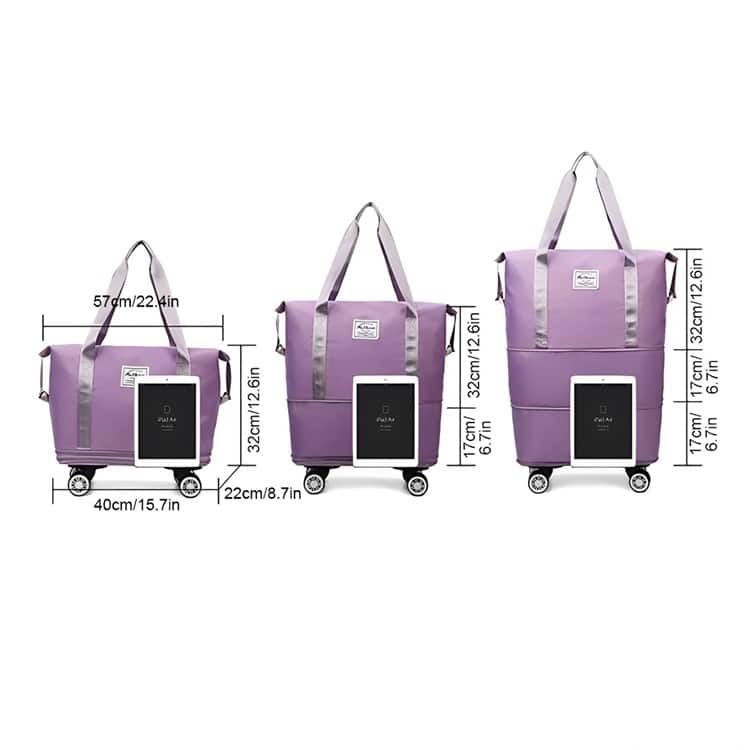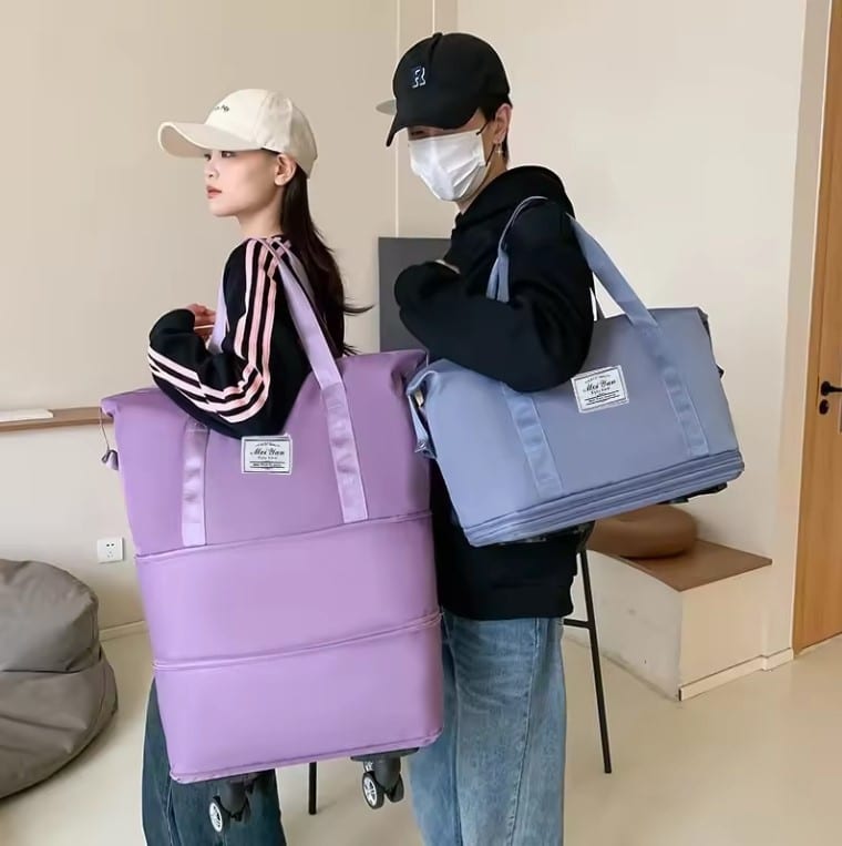 תיק נסיעות מתרחב לפי הצורך עם 4 גלגלים מתפרקים.